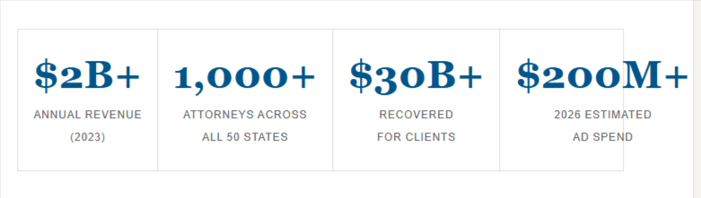 “Morgan & Morgan reset expectations for what visibility looks like in law. It turned a legal practice into something closer to a consumer brand.”PR News, February 2026
